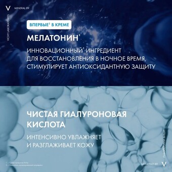 Инновация среди продуктов Vichy – увлажняющий восстанавливающий ночной крем Mineral 89 с силой чистого мелатонина.*