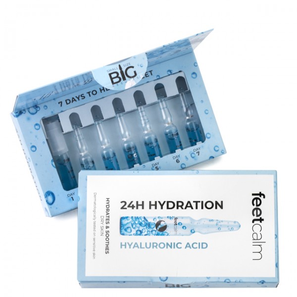 - Ампульный концентрат с гиалуроновой кислотой, аллантоином и мочевиной для сухой, обезвоженной кожи стоп.