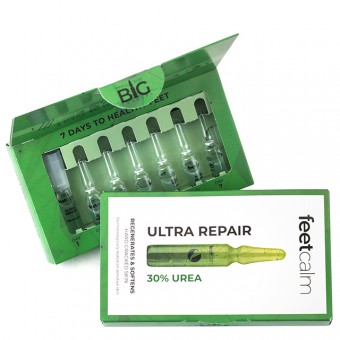 - Ампульный концентрат с 30% мочевиной для восстановления очень сухой и жесткой кожи стопы.