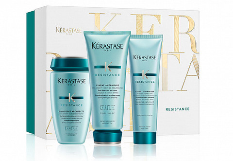 1. Шампунь-Ванна Kerastase Resistance Force Architecte - Шампунь, восстанавливающий структуру и поверхность поврежденных и ослабленных волос (степень повреждения 1-2). Идеально очищает поверхность кожи головы и волос, поверхностно насыщает волосы активными компонентами комплекса Вита-Цемент, делая их более эластичными и плотными.