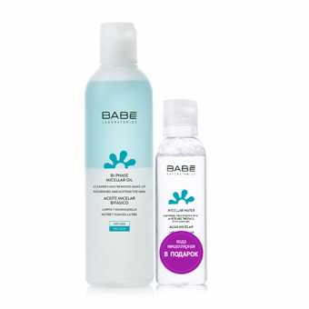 Набор средств BABE Laboratorios Масло мицеллярное 250 мл и Вода мицеллярная 100 мл (8437019999964) предназначены для снятия макияжа. Двухфазное мицеллярное масло мягко очищает лицо и удаляет макияж (включая водостойкий) с лица, глаз и губ. Его формула без мыла обогащена натуральными маслами, Увлажняет и питает кожу. Адаптирована для склонной к сухости и чувствительной коже. Идеально подходит для сухой, очень сухой или атопичной кожи благодаря увлажняющему и противовоспалительному действию его натуральных масел. Мицеллярная вода подходит для всех типов кожи, особенно для наиболее чувствительных и подвергающихся агрессивным дерматологическим процедурам. Одним движением обеспечивает комфортное состояние, увлажнение и свежесть, которые необходимы коже лица. Отсутствие спирта и очищающая система на мицеллярной основе обеспечивают высокую переносимость кожей, благодаря чему продукт идеален даже для наиболее нежной кожи. Входящая в состав лакрица помогает выравнивать цвет кожи.