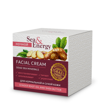 Ночной уход за нормальной и сухой кожей лица с подтягивающим эффектом, обеспечивается за счет активных компонентов крема, таких как экстракт имбиря, масло Ши, пептидный комплекс, коллаген и минералы Мертвого моря.