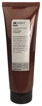 Очищающее средство для волос и тела Man Hair & Body Cleanser от INSIGH содержит активные компоненты: масло чайного дерева и натуральный экстракт алоэ.