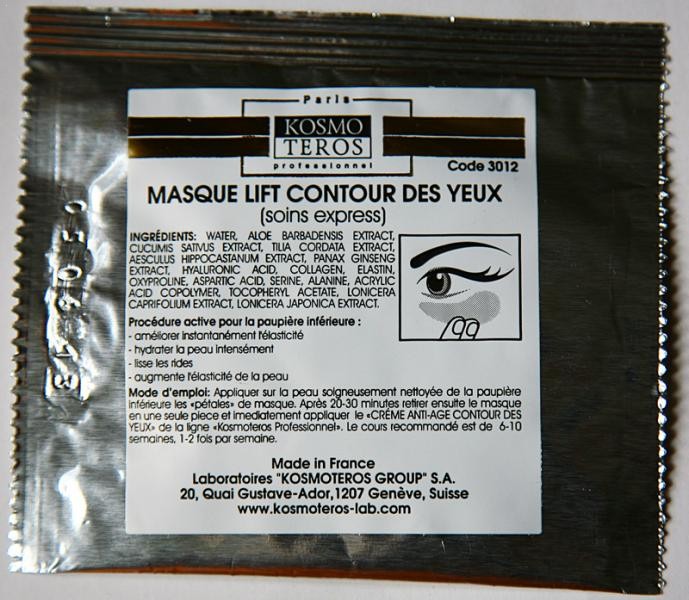 Способ применения: на предварительно очищенную область нижнего века нанести «лепестки» маски. Через 20‐ 30 минут, не смывая, снять «лепестки» и сразу нанести Омолаживающий крем‐корректор для контура глаз Crème‐ Correcteur Rajeunissant Yeux "ContourdesYeux".