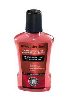 Ополаскиватель для полости рта Wünderdent Для чувствительных зубов - это лечебно-профилактическое средство для дополнительного ухода за полостью рта. Входящие в состав ополаскивателя активные ингредиенты помогут снизить чувствительность зубов к различным видам раздражителей.