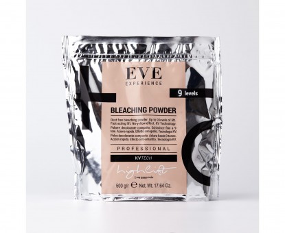 Инновационная формула EVE Bleaching powder способна удерживать аммиак и постепенно его высвобождать в процессе осветления, что позволяет, достичь высокого уровня освещения с низким процентом аммиака, в отличие от других осветляющих порошков. Продукт не имеет резкого запаха аммиака и делает сам процесс окрашивания более комфортным, как для клиента, так и для мастера. Обогащенный KV Technology, EVE Bleaching powder позволяет сделать безопасное осветление, не нанося вреда волосам.