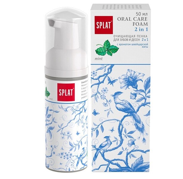 Очищающая пенка для зубов и десен SPLAT с ароматом мяты рекомендована стоматологами в качестве дополнительного ухода за полостью рта. Благодаря инновационной запатентованной системе LUCTATOL® с комплексом молочных ферментов и экстрактом лакричного дерева мятная пенка за 5 секунд расщепляет налет, защищает от кариеса и надолго освежает дыхание!
