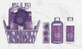 Корзинка плетеная ленточками на металлическом каркасе, Гель для душа 250 мл, Лосьон для тела 250 мл, Мыло фигурное 3*4 г