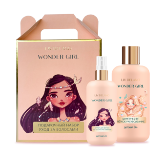 Подарочный набор «WONDER GIRL Уход за волосами» покорит самых требовательных маленьких покупателей. Линейка продуктов, входящих в состав набора, разработана в соответствии с требованиями и потребностями детей старше трех лет. Каждая маленькая девочка в этом возрасте мечтает стать принцессой. Привлекательный дизайн и аромат продукции не оставят равнодушной ни одну маленькую принцессу и позволят ей окунуться в мир волшебства!