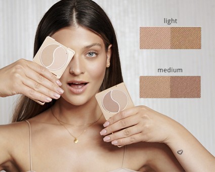 С помощью двух оттенков палетки Self Glow можно сделать множество вариаций макияжа: от едва заметного скульптурирования лица до золотистого пляжного загара.