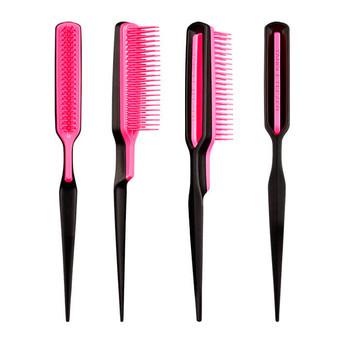 Tangle Teezer Back-Combing Hairbrush – расчёска, созданная специально для начесов. Преимущество расчёски в её зубчиках: благодаря их уникальному двухуровневому строению и расположению, волосы не спутываются и не повреждаются во время создания начеса, а специальная форма в виде бутылочек позволяет сохранить гладкость волос. Волосы становятся объемными, сохраняют свой естественный блеск и эластичность. Специальная ручка (хвостик) удобна для разделения волос на ровные пряди. Расческа Tangle Teezer Back-Combing Hairbrush представлена в черно-розовом цвете.