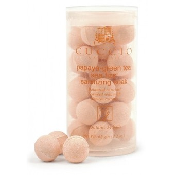 Растворимые шарики для маникюрной ванночки "Папайя и зеленый чай" увлажняют, смягчают и подготавливают к обработке кожу, кутикулу и ногти. Обладают антисептическим и успокаивающим эффектом. Способ применения: На не большую емкость достаточно 1 таблетки. Для ванной использовать 2-3 таблетки.