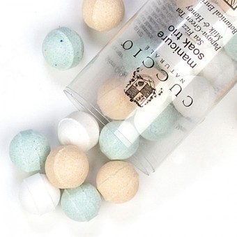 Растворимые шарики для маникюрной ванночки с мультиароматами - антисептические пенящиеся шипучие шарики для замачивания рук при маникюре. Дезинфицируют и отбеливают ногти, смягчают, насыщают кислородом кутикулы и кожу вокруг ногтей, заново наполняя клетки влагой. Главными компонентами препарата являются: морская водоросль, масло жожоба, масло лимона, трава хвоща, вытяжки календулы и окопника, иланг-иланг. Антисептические шарики для маникюрных ванн, с маслом чайного дерева и морскими водорослями от Cuccio Naturale это необходимый атрибут качественной процедуры маникюра. Они значительно смягчают жесткую воду, мягко действуют на ногти и кожу рук. Антисептические шарики растворяются в воде, в которой предварительно размягчают ногти и кожу рук, оказывая на кутикулу и кожу смягчающее и отбеливающее действие. Шарики содержат антибактериальные компоненты, способствующие быстрому заживлению кожи и кутикулы. Результат: Cuccio Naturale способствуют быстрому заживлению кожи при мелких повреждениях. Кожа становится более светлой, гладкой и нежной. Состав: Фруктовые кислоты, ментол, масла жожоба и лимона, экстракт морских водорослей, чайного дерева, экстракты календулы, тимьяна, кристаллы морской соли, тальк, экстракт папайи. Способ применения: Растворить 1-2 шарика в 1 литре теплой воды.