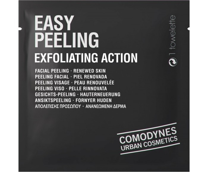 Салфетка-пилинг для лица и тела с отшелушивающим действием "Легкий пилинг" Comodynes Easy Peeling Exfoliating action Facial Peeling-Renewed Skin бережно и эффективно устраняет остатки загрязнений кожи и отмершие клетки. Применение салфетки обеспечивает не только поверхностное, но и глубокое очищение в порах кожи, в результате чего кожа обновляется, становится более гладкой, выравнивается тон и цвет кожи. Пилинг кожи при применения салфетки обеспечивается за счет двух механизмов: механический за счет содержания очищающих микросфер в самой ткани салфетки и биологический за счет включения в формулу активных ингредиентов, обеспечивающих обновление клеток.
