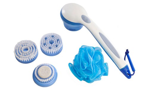 Электрическая массажная щетка «ГЛАДКАЯ КОЖА» содержит в комплекте 5 разнофункциональных насадок: - Насадка в форме мочалки позволяет достать все труднодоступные места Вашего тела. - Специальная поролоновая насадка предназначена для купания малышей. - Массажная насадка поможет справиться с целлюлитом, улучшить кровообращение, обменные процессы в организме. - Насадка с резиновыми пальчиками осуществляет интенсивный массаж тела плюс дает скрабирующий эффект. - Насадка с пемзой помогает привести в идеальное состояние ступни с помощью эффективного пилинга. Работает от 3 батареек АА типа. Способ применения: 1. Добавьте на насадку жидкого мыла или геля, чтобы образовалась пена, вылив его в специальный резервуар. 2. Для включения/выключения прибора используйте кнопки ON/OFF. 3. Начните использовать прибор. Будьте внимательны: чтобы не допустить повреждения кожи, насадки сконструированы таким образом, что могут отсоединиться, если будет приложено чрезмерное усилие при нажатии. Противопоказания: - Запрещается использовать прибор людям с физическими и умственными недостатками без дополнительного присмотра. - Не используйте прибор, если у вас есть поврежденные участки кожи, сыпь, в том числе и угревая, или иные проблемы с кожей. Меры предосторожности: - Во время принятия душа не откручивайте колпачок и не переставляйте батарейки. Убедитесь, что Ваши руки полностью сухие, прежде чем менять батарейки и откручивать колпачок. - Не рекомендуется наполнять прибор жидким мылом или гелем для душа, когда он включен. Рекомендации по уходу: Не требует особого ухода. Рекомендуется лишь после каждого использования промывать насадки и сам прибор, избавляя его от остатков мыла или геля.