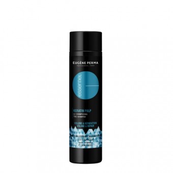 Шампунь Essentiel Keratin Pulp Shampoo придает волосам густоту и визуальный объем без утяжеления и жирности. Это обеспечивается благодаря специальному подбору активных компонентов, среди которых — комплекс растительных кератинов, протеины, олигопептиды и аминокислоты. Кроме того, в состав шампуня входит вещество, полученное из корней растения маки перуанской. Оно способствует утолщению и укреплению волос. Локоны остаются такими же легкими, но визуально — значительно более объемными и густыми.