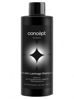 Применение: аккуратно вспеньте и тщательно распределите шампунь по всей длине влажных волос. Мягко промойте волосы, стараясь не деформировать форму и структуру. Тщательно смойте шампунь и воспользуйтесь специальным Кондиционером для поддержания эффекта ламинирования (Keratin Laminage Conditioner).