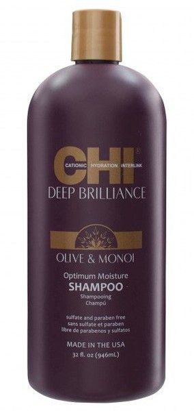 CHI Deep Brilliance Olive & Monoi Optimum Moisture Shampoo - Увлажняющий шампунь для повреждённых волос бережно очищает пряди, насыщая их необходимым количеством влаги и делая шевелюру шёлковистой и послушной. Формула средства обогащена супер-увлажняющим оливковым маслом, уникальной смесью из масел монои и кокоса и экстрактом гардении, который укрепляет и восстанавливает поврежденные пряди.