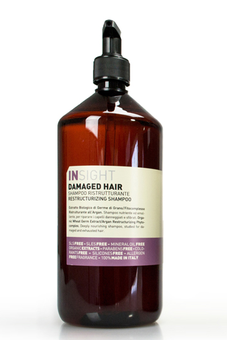 Шампунь для поврежденных волос Damaged Hair Restructurizing Shampoo INSIGH содержит ингредиенты: биологический экстракт ростков пшеницы, масло оливы, масло аргана, масло рисовых отрубей.