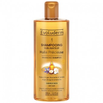 Шампунь для волос Evoluderm Huile Precieuse Shampoo - настоящее спасение для ломких пересушенных локонов. При контакте с водой средство образует деликатную пенку, которая безупречно очищает пряди и кожу головы от накопившихся загрязнений, не нанося вреда структуре волос. Формула обогащена соединением масел арганы и бурака, комплексное воздействие которых интенсивно питает и увлажняет локоны изнутри и разглаживает поврежденные чешуйки. В результате волосы выглядят безупречно чистыми, оптимально увлажненными, легкими, струящимися и эластичными.