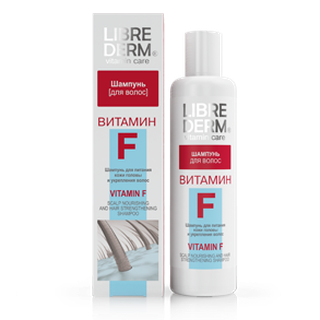 Витамин F необходим для нормального функционирования клеточных мембран, участвует в регуляции подкожного жирового обмена. При недостатке витамина F развивается сухость кожи, появляются очаги шелушения, волосы, не получая полноценного питания, истончаются и начинают выпадать. Шампунь «Витамин F» предназначен для мягкого очищения сухой чувствительной кожи головы и истонченных волос, склонных к выпадению.