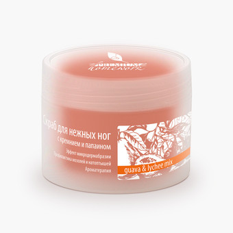 Полирующий SPA-препарат для кожи стоп и мягкой части подошвы с кристаллами кремния и ферментом папайи. Средство объединило в себе свойства абразивного и ферментативного пилинга. Удаляет ороговевшие клетки эпидермиса и продукты кожного метаболизма. Идеальное средство профилактики потливости стоп, натоптышей и мазолей. Аромакоктейль папайи, гуавы и личи превратит уход в сеанс тропической ароматерапии.