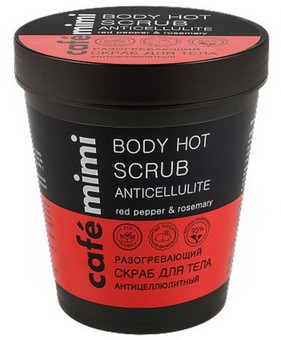 Скраб для тела с разогревающим эффектом содержит экстракт красного перца и эфирное масло розмарина - незаменимый помощник в борьбе с целлюлитом.