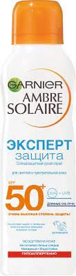 Сухой спрей Эксперт защита SPF 50+ . Гарньер Амбр Солер создает сухой спрей для бережной защиты от UVB-, UVA- и длинных UVA-лучей.
