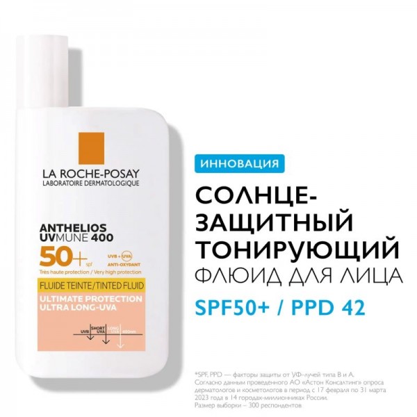 Солнцезащитный тонирующий флюид для лица защищает кожу от ультрадлинных UVA-лучей (380-400 нм) которые незаметны, но при этом повреждают кожу на глубоком клеточном уровне и составляют 30% УФ-лучей, воздействующих на кожу круглый год. Выравнивает тон кожи и обеспечивает 8 часов увлажнения и устойчивость к воде, поту и песку.