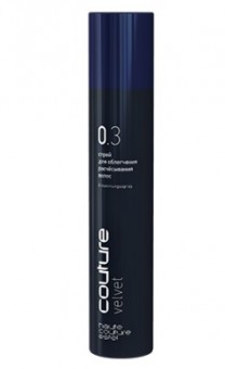 Спрей эффективно облегчает работу с волосами: расчёсывание, стрижку, создание укладок. Обладает антистатическим эффектом и нулевым уровнем фиксации. Протеины кератина, протеины пшеницы и полимер Luviquat® в составе формулы улучшают качество волос и делают спрей VELVET незаменимым продуктом.