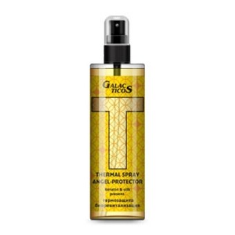 Спрей-мгновенная защита волос от негативного термического воздействия при применении плойки, фена или утюжка. Абсолютно не утяжеляет волосы. Действие основано на системе взаимного усиления полипептидов с длинной цепью и большой молекулярной массой и гидрофильных полимеров, которые образуют тончайшую, защитную биологическую пленку на всей поверхности волоса, восстанавливая структуру и защищая от нежелательного перегревания. Наличие кератина, позволяет оперативно восстанавливать поврежденные участки фактически изнутри стрежня волоса, выравнивая его и унифицируя чешуйки волоса.