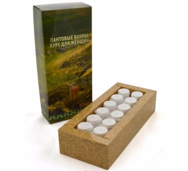 Состав на одну ванну: Сухая кровь марала -3г. Хвойный концентрат- 7г.