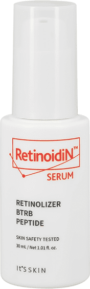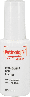 ыворотка It's Skin Retinoidin Serum работает на внутреннее обновление кожи, омолаживает и борется с возрастными изменениями. Продукт разглаживает мелкие мимические морщинки, уменьшает выраженность заломов, разглаживает микрорельеф, улучшает текстуру кожи, повышает эластичность эпидермиса. Продукт содержит комплекс Retinolizer, состоящий из эффективных антиэйдж-активов: ретинола, аденозина и гиалуроната натрия. Ретинтол — форма витамина А, которая стимулирует клеточное деление и активирует внутреннее обновление кожи: сглаживает, уменьшает глубину глубоких морщин и устраняет мелкие морщинки, повышает плотность, подтягивает. Формула обогащена аргирелином (Acetyl Hexapeptide-8) — пептидом, который разглаживает мимические морщины за счёт ботулоподобного действия: расслабляет лицевые мышцы, оказывая миорелаксирующий эффект. Средство содержит эффективные увлажняющие активы, которые предотвращают раздражение и повреждение кожи, глубоко питают и укрепляют защитный барьер. Повышает чувствительность кожи к УФ-излучению