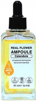 May Island Real Flower Ampoule Calendula – это успокаивающая балансирующая ампульная сыворотка для лица с тающими лепестками календулы. Косметическое средство в ампуле – это высокоэффективное решение для ослабленной, подверженной стрессу, а также склонной к отекам кожи. Главная ценность этой ампулы кроется в высокой концентрации активных ингредиентов в точной дозировке, создающих ощущения легкости и комфорта и способствующих улучшению качества поверхности кожи, делая её матовой и гладкой. Введенные в основное средство ферментированные лепестки календулы буквально тают на поверхности кожи, укрепляют естественный защитный кожный покров и снижают пагубность влияния химических раздражителей. Средство увлажняет и питает кожу, регулирует работу сальных желёз, снимает раздражения, успокаивает жирную и проблемную кожу, а также стимулирует выработку собственного коллагена и эластина, уменьшает мимические морщины. Флакон, изготовленный их фармацевтического стекла, обеспечивает отсутствие окисления ингредиентов и гарантирует высокую эффективность препарата.