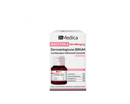 Дерматологическая сыворотка без запаха, уменьшающая видимость капилляров содержит специально разработанную формулу NA-N 80 mg/1g, которая состоит из активных ингредиентов, действующих целенаправленно на заметные куперозные изменения. Препарат эффективно уменьшает видимость капилляров, осветляет пигментные изменения, возвращает ровный цвет и сияние, укрепляет эластичность кровеносных сосудов, повышая их прочность, уменьшает покраснения кожи, противодействует образованию новых „звездочек”, снимает раздражения, снижает чувствительность кожи.