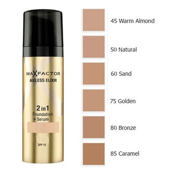 Тональная основа Ageless Elixir 2 in 1 от Max Factor разработана, чтобы скрывать признаки старения кожи, мелкие морщинки и пигментные пятна.