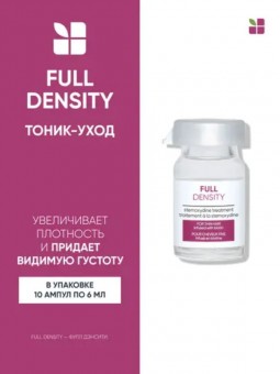 Matrix Biolage Fulldensity Treatment at Stemoxydine – высокоэффективное средство для стимуляции роста новых волос. В состав ампул Матрикс Биолаж Фулдэнсити входит 5% стемоксидин. Активная молекула стемоксидина «пробуждает» спящие волосяные фолликулы, в результате чего уже через 10 дней волосы обретают эластичность, через 3 месяца становятся значительно гуще. Лабораторные исследования подтверждают появление около 1000 новых волос в течение трех месяцев.