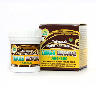 Твёрдый крем-бальзам «ТАМБА ШОКОЛАД» + Авокадо применяется для ухода за кожей лица и тела, с защитным, увлажняющим, питающим и противовоспалительным эффектом.