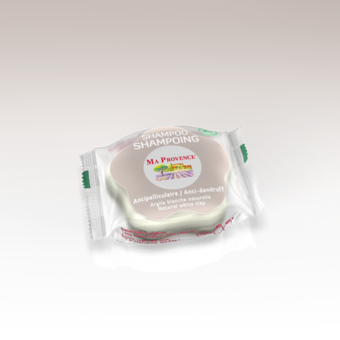 Твердый шампунь Ma Provence на основе белой глины и растительного глицерина с органическими экстрактами пшеницы, апельсина, чабреца (Тимьян) и маслом Ши.