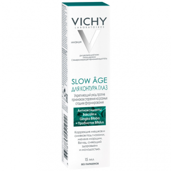 Признаки старения зарождаются задолго до того, как Вы видите их проявление на поверхности кожи. 80% из них спровоцированы воздействием внешних факторов. Эти факторы запускают процесс окисления и разрушения межклеточных связей в коже. Это предвестники старения, которые со временем проявляются на поверхности кожи в виде морщин, пигментации, потери упругости, тусклого тона и неровной текстуры. SLOW GE 1-ый укрепляющий крем от VICHY, который корректирующий не только видимые, но и зарождающиеся признаки старения. Кожа вокруг глаз мгновенно становится увлажненной и выглядит более молодой. Протестировано под контролем дерматологов и офтальмологов. Подходит для чувствительных глаз.