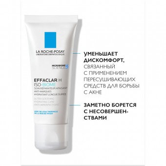 УЛЬТРА Успокаивающий Восстанавливающий Уход против несовершенств ЭФАКЛАР Н Iso-Biome, 40 мл. Для проблемной кожи, ослабленной и чувствительной в результате использования пересушивающих средств для борьбы с акне. Формула обогащена Аква Позе Филиформис - запатентованным пребиотиком, созданным в воде из источника La Roche-Posay. Успокаивает, восстанавливает кожу, обладает физиологичным pH.