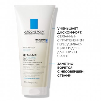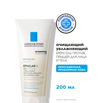 УСПОКАИВАЮЩИЙ ОЧИЩАЮЩИЙ КРЕМ-ГЕЛЬ ПРОТИВ НЕСОВЕРШЕНСТВ ЭФАКЛАР Н Iso-Biome, 200 мл. Для ослабленной кожи лица и тела, склонной к акне. Проблемная кожа, ослабленная и чувствительная в результате использования пересушивающих средств для борьбы с акне. Эксклюзивный активный компонент Aqua Posae Filiformis в средствах La Roche-Posay помогает регулировать микробиом кожи, сохраняя на ее поверхности полезные бактерии.