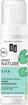 ENJOY NATURE увлажняющая и успокаивающая очищающая пенка 150 мл. AA ENJOY NATURE - это идеально подобранный натуральный уход, отвечающий потребностям вашей кожи! Используя силу эффективных растительных экстрактов, мы создали уникальную гипоаллергенную формулу увлажняющей и успокаивающей очищающей пены, которая эффективно очищает, увлажняет и успокаивает кожу. Делайте ставки на природу и наслаждайтесь красивой и здоровой кожей лица! Действие активных ингредиентов: - CICA - экстракт азиатского полыни, снимает воспаления и стимулирует кожу. Восстанавливает раздраженную кожу, придавая ей облегчение и здоровый вид. - Сок листьев алоэ & ndash; заметно улучшает состояние кожи: увлажняет, смягчает и способствует заживлению микроповреждений, придавая коже сияние. - Аллантоина & ndash; успокаивает и восстанавливает кожу, делая ее мягкой и гладкой. Дерматологически протестирован на людях с аллергическими кожными заболеваниями. Не содержит краситель. С гипоаллергенным парфюмерным составом. pH нейтральный для кожи. Для всех типов кожи, даже для чувствительной. 98% ингредиентов природного происхождения. Гипоаллергенный продукт.