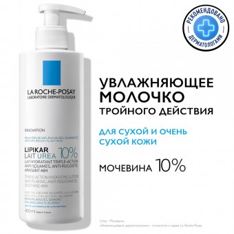 Увлажняющее молочко для тела тройного действия LIPIKAR LAIT UREA 10% против шелушения, шероховатости, успокаивает кожу на 48 часов.* Для детей, взрослых и пожилых людей. Помогает уменьшить все признаки сухости кожи и их последствия: шероховатость, шелушение. Улучшает внешний вид сухой кожи, способствуя устранению шелушащихся и шероховатых участков. Заметно успокаивает и уменьшает ощущение дискомфорта. Ощутимо повышает эластичность кожи.