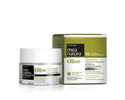 Увлажняющий и восстанавливающий 24-часовой крем для лица и глаз обогащен органическим оливковым маслом, известным своими антиоксидантными свойствами, и активным комплексом, богатым ингредиентами растительного происхождения, такими как фосфолипиды, полисахариды, витамины, минералы и микроэлементы.