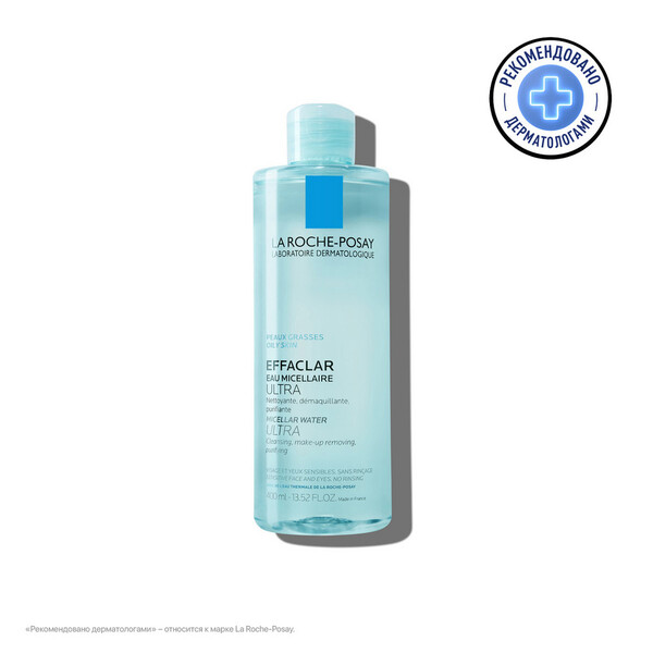 Новая архитектура формулы мицеллярной воды, разработанная Дерматологической лабораторией La Roche-Posay, позволила соединить силу мицелл и глицерина для достижения ультра эффективности и оптимальной переносимости. Новая мицеллярная вода равномерно распределяется по поверхности кожи, не вызывает трения и повреждения защитного барьера кожи. Благодаря новой формуле средства происходит прочный захват и удержание всех частиц макияжа и микро-загрязнений. Содержит термальную воду La Roche-Posay. Мицеллярная вода ULTRA EFFACLAR предназначена для жирной проблемной кожи. Формула обеспечивает моментальное очищение и удаление макияжа, одновременно уменьшая избыток себума. Не содержит парабенов, мыла, красителей, маслянистых компонентов и спирта.Физиологический уровень pH 5.5.