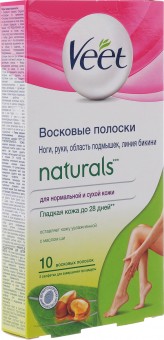 Особенности восковых полосок для депиляции Veet Naturals для нормальной и сухой кожи с маслом ши