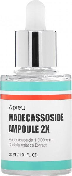Успокаивающая сыворотка с мадекассосидом A'pieu Madecassoside Ampoule 2X — высококонцентрированное средство, которое подходит для проблемной кожи, кожи склонной к высыпаниям, акне и воспалениям в период обострения и на всех стадиях регенерации кожи. Оказывает мощное антиоксидантное действие, cтимулирует синтез коллагена, оказывает противовоспалительный эффект, ослабляет действие УФ- излучения, улучшает микроциркуляцию, регулирует процессы кератинизации. Обладает противовоспалительным и ранозаживляющим действием, способствует восстановлению барьерных свойств кожи и удержанию влаги, снижает чувствительность кожи, уменьшает отеки, оказывает сосудоукрепляющее действие и уменьшает купероз.