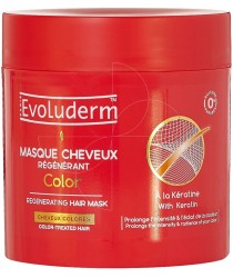 Evoluderm Color Regenerating Hair Mask — косметическая маска на основе кератина, созданная для защиты цвета от вымывания и восстановления поврежденных участков волос. Маска действует как защитная вуаль — щит перед разрушительным воздействием ультрафиолетового излучения и других агрессивных внешних факторов. Уникальная формула маски продлевает интенсивность сияния цвета, препятствует его выгоранию. Кремообразная консистенция легко наносится и смывается без остатков.
