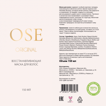 Состав / Ingredients: Aqua, Cetyl Alcohol, Stearyl Alcohol, Hermetia illucens Oil, Cetrimonium chloride, Behentrimonium Chloride, Glycerin, Dimethicone, Propylene Glycol, Nettle Leaf Extract, Rosa Canina Fruit Extract, Laminaria Digitata (Horsetail Kelp) Extract,